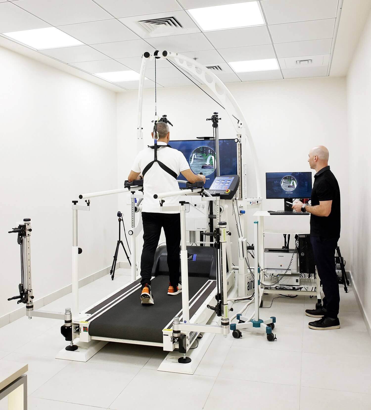 نستخدم في مركز التميّز الذهني والبدني منصة التدريب المعرفي الأكثر يقدماً في العالم من الناحية العلمية، لتعزيز ذروة أدائك. وكجزء من خطتك العلاجية، سوف تستكمل نظامنا الفريد للتدريب المعرفي في الوقت نفسه الذي تمارس فيه التمارين البدنية على جهاز المشي الطبي المتطوّر إتش/ بي/ كوسموس. فقد أظهرت الأبحاث ان هذا المزيج من المجهود البدني والمعرفي يزيد من فوائد برنامج التميّز الذهني والبدني، وينتقل بقدراتك الذهنية والجسدية إلى المستوى التالي. كما نستخدم جهاز إتش/ بي/ كوسموس لإجراء تحليلات ذات صلة بطريقة المشي والوقوف، من خلال تسخير تقنيتها المتقدمة للاستشعار لفحص جسمك أثناء المشي أو الجري. ونستخدم هذه التحليلات لتخصيص خطتك العلاجية وتحقيق أقصى قدر من النتائج.
